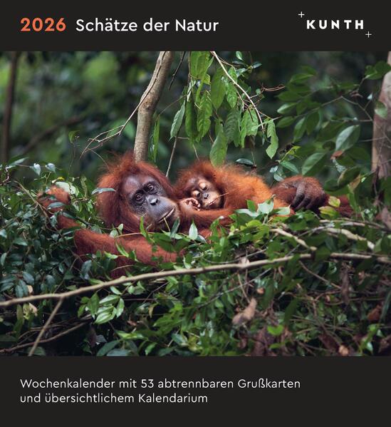 Woche um Woche begleitet dieser KUNTH Postkartenkalender "Schätze der Natur" 2026 mit atemberaubenden Bildern durch das Jahr - auf dem Schreibtisch oder als Hingucker an der Wand. Die Postkarten zum Herauslösen können dann als Gruß versendet werden. In den höchsten Höhen von Gebirgen und dem tiefsten Grün der Regenwälder schlummern Schätze, die es zu bewahren gilt, nicht zuletzt, weil sie zahlreichen Tieren und Pflanzen einen Lebensraum bieten. Einen Beitrag dazu liefert die Liste der UNESCO Naturerbestätten. 53 fantastische Fotografien in hochwertigem Druck können als Postkarten gesammelt oder verschickt werden. Natürlich enthält der Kalender einen praktischen wöchentlichen Terminplaner. + 53 fantastische Bilder in brillantem Druck auf stabilem Karton + zum Aufstellen auf dem Schreibtisch oder zum Aufhängen als Blickfang an jeder Wand + 53-mal Karten zum Sammeln, Verschenken oder Verschicken