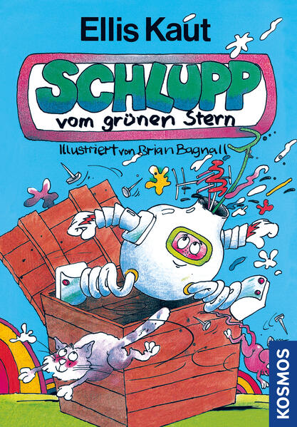 Kaut, EllisEigentlich sollte Schlupp ein ganz normaler Roboter werden, wie es ihn zu Tausenden auf dem grünen Stern Baldasiebenstrichdrei gibt: gehorsam, willenlos und arbeitsam. Aber er hat einen Fehler, einen leider unauffindbaren: Er hat eine Seele! Das wäre aber gar nicht so schlimm gewesen, wenn nicht Herr Ritschwumm den mißratenen Schlupp anstatt auf die Müllhalde auf die Erde geschossen hätte. Denn dass er dort allerhand Unsinn treiben würde, kann man sich denken.