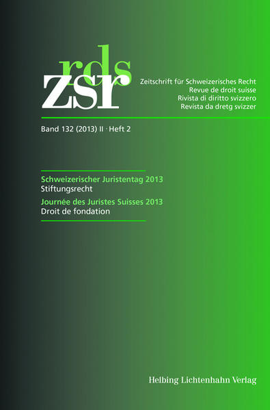 Januar 2013, 226 Seiten, Zeitschrift für Schweizerisches Recht, Bd. 132/2013/2. Heft 2, Deutsch/Französisch/Italienisch/