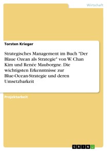 Torsten KriegerProjektarbeit aus dem Jahr 2022 im Fachbereich BWL - Unternehmensführung, Management, Organisation, , Sprache: Deutsch, Abstract: Im Rahmen der Projektarbeit zum Kurs Strategisches Management wird das Buch "Der Blaue Ozean als Strategie" von W. Chan Kim und Renée Mauborgne behandelt. Der im Buch dargestellt strategische Ansatz unterscheidet sich maßgeblich von bisher üblichen Strategieansätzen. Als Anwendungsbereiche sind neben der grundsätzlichen Unternehmensstrategie die Bereiche Marketing und Innovation zu nennen. Die Methode scheint zudem auf Wirtschaftssektoren anwendbar zu sein, um sich von der Konkurrenz zu differenzieren und ein hohes Leistungsniveau zu halten.Die Autoren verfolgen den Ansatz, nicht in bestehenden Märkten zu agieren, sondern neue konkurrenzfreie Märkte zu schaffen. Der Fokus liegt darauf, dem Wettbewerb auszuweichen und diesen nicht zu versuchen zu überbieten, sondern zeigt einen Alternativweg in wettbewerbsfreie Marktfelder führen kann. Hierbei unterscheiden die Autoren zwischen "Roten Ozeanen" als gesättigte Märkte ohne Wachstumschancen und "Blauen Ozeanen" als neue Märkte, in denen sich ein Unternehmen allein und ohne Konkurrenz entwickeln kann.Im weiteren Verlauf der Projektarbeit wird zu Beginn die Fragestellung nach den drei wichtigsten Erkenntnissen aus dem Buch beantwortet. Danach folgt ein Vergleich mit den klassischen Strategieansätzen zur Ergründung neuer Märkte. Hier wird beispielhaft die Nischenstrategie nach Porter, die Diversifikationsstrategie nach Ansoff und die schöpferische Zerstörung nach Schumpeter. Hier werden Unterschiede verdeutlicht und herausgestellt. Abschließend wird die praktische Umsetzbarkeit der drei wichtigsten Erkenntnisse der Blue-Ocean-Strategie für die PSD Bank Hannover e.G. überprüft, indem diese auf die Bank angewendet und beurteilt werden. Hierbei findet einleitend eine kurze Vorstellung des Unternehmens PSD Bank Hannover e.G. und dessen Geschäftsmodell statt.