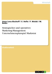 Studienarbeit aus dem Jahr 2010 im Fachbereich BWL - Offline-Marketing und Online-Marketing, Note: 1,7, Universität Hamburg (Institut für Marketing und Medien), Veranstaltung: Strategisches und Operatives Marketing-Management, Sprache: Deutsch, Abstract: In der vorliegenden Arbeit wird der Planungs- und Entscheidungsprozesses des Marketing-Managements untersucht. Begleitend hierzu wird das Unternehmensplanspiel Markstrat durchgeführt, in dem in der Praxis zu treffende Entscheidungen realitätsnah simuliert werden. Diese Arbeit hat zum Ziel das unternehmerische, strategische und operative Marketing zu untersuchen und die Planungs- und Entscheidungsprozesse von der Festlegung einer Marketingstrategie, über die Definition von Marketingzielen, hin zur Umsetzung durch operative Marketinginstrumente darzustellen.
