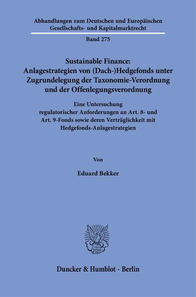 Sustainable Finance: Anlagestrategien von (Dach-)Hedgefonds unter Zugrundelegung der Taxonomie-Verordnung und der Offenlegungsverordnung