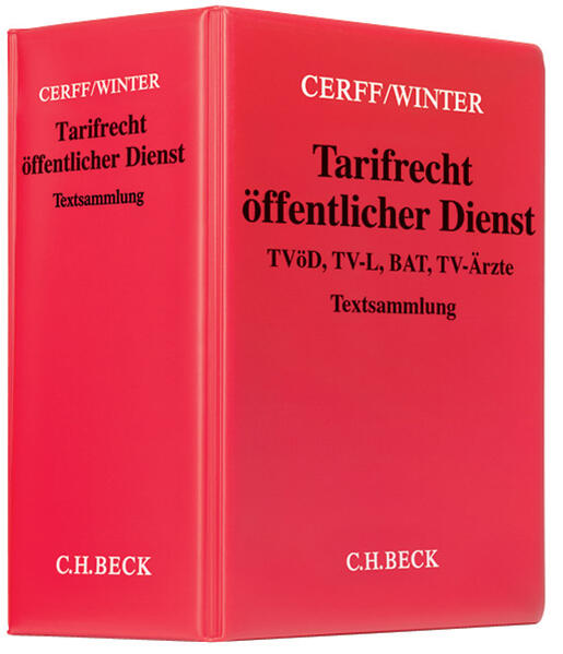 Der "Cerff/Winter" ist die umfassende und systematische Textsammlung zum gesamten Tarifrecht für den öffentlichen Dienst. Er enthält alle wichtigen Tarifverträge für Bund, Länder und Kommunen mit allen zugehörigen Änderungs- und Zusatztarifverträgen, Sonderregelungen, Protokoll-Notizen und Hinweisen.