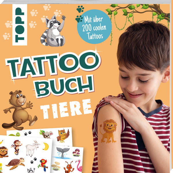 Tattoos sind einfach klasse! Hier findest du über 200 Tattoos mit den coolsten Tiermotiven! Die Tattoos sind leicht aufzutragen und halten für mehrere Tage. Außerdem erwarten dich spannende Rätsel, tolle Seiten zum Ausmalen und lustige Infos, die du ganz bestimmt noch nicht wusstest.