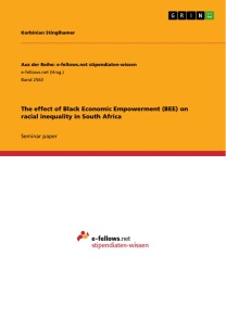 Seminar paper from the year 2016 in the subject Economics - Case Scenarios, grade: 1,0, University of Wisconsin-Madison (Economics), course: Economics 477: Economic Development of Africa, language: English, abstract: This paper investigates the Black Economic Empowerment (BEE) program in South Africa and its economic justification by analyzing the trends in both, intra- and interracial inequality, since the implementation of BEE. Even though inequality is driven by many different factors, this paper attempts to analyze whether BEE was able to effectively reduce inequality in the way that it was intended. My findings suggest that BEE might have helped to reduce inequality between different races, but that it increased inequality among black people.During Apartheid, black people were excluded from major parts of South Africa’s economy. This resulted in an unequal income distribution in South Africa. Even after Apartheid ended in 1994 income was distributed unequally between races. In order to reduce this inequality and equalize opportunities between the different races in South Africa, the government implemented an affirmative action program called Black Economic Empowerment (BEE) in 2003. In this case and in the following sections, the word “black” defines a racial group, including Africans, coloreds and Indians and can thus be used as synonym for “non-whites.” BEE introduced a scorecard which rates companies based on their economic inclusion of black people. If the respective company receives a low rating on the scorecard, there will likely be a negative effect on their profit compared to a company with a high rating. The basic critique of BEE is that its main beneficiary is a small elite. Studies about the actual effects of BEE are rare, as data on this topic is limited.