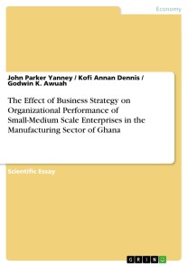 Scientific Essay from the year 2014 in the subject Business economics - Accounting and Taxes, ( Atlantic International University ) (Faculty of Business and Economics), course: Business Management, language: English, abstract: This study examined the impact of business strategy on the organizational performance of Small-Medium Scale Enterprises (SMEs) in the manufacturing sector of Ghana. Whereas some SMEs are aware of the extent to which strategy can impact on their businesses, not much has been studied to identify the specific strategies which can be used to improve the performance of the SMEs. The study made use of questionnaires which were adminstered to 100 respondents who were randomly drawn from 10 SMEs. The performance indices were derived from a time series data from 2008 to 2013 on sales, profits before tax and labour size. Regression and analysis of variance (ANOVA) were run to examine the relationship between strategy and organizational performance. It was found that, business strategy statistically and significantly impacted on organizational. Again, cost leadership significantly influenced organizational behaviour but differentiation and focus strategies did not. The study recommends that the SMEs should strategic enough and also take advantage of cost leadership to enhance growth and induce greater organizational performance.