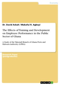 Research Paper (postgraduate) from the year 2014 in the subject Leadership and Human Resources - Miscellaneous, grade: B, ( Atlantic International University ) (School of Business and Economics), course: Ph.D. Economics, language: English, abstract: The quality of Human Resource is an asset to any organization and as a result Training has become an issue that has to be faced by every organization. The amount, and quality of training carried out varies enormously from organization to organization due to factors such as the degree of external change, for instance, new markets or new processes, the adaptability of existing workforce and importantly the extent to which the organization supports the idea of internal career development. Most organizations meet their needs for training in an ad hoc and haphazard way whiles others set about identifying their training needs, then design training activities in a rational manner and finally assess the results of training. This study, therefore, sought to determine the impact of Training and Development on public sector organizations using Ghana Ports and Harbors Authority (GPHA) as a case study. The research was intended to determine the role and impact of training on employees with emphasis on the lower, middle level staff and the administrators of GPHA, who were randomly selected. The study assessed the training and development process of GPHA and whether training has improved employee performance. A questionnaire was designed using structured questions to collect primary data from employees of GPHA. Personal interviews were held with some management staff of the organization. The results indicated that GPHA’s employees were not well informed about training and development programmes in the organization. Most of the employees were of the view that training and development were effective tools for both personal and organizational success. The findings revealed that training practices, methods and activities at GPHA are not in line with the best practices regarding the planned and systematic nature of the training process as is generally known. It was recommended among other things, that the processes involved in training be duly followed, GPHA should help its staff identify their career paths and to guide them in the pursuit of higher education.