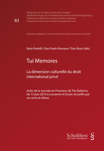 A l’occasion du troisième anniversaire du décès de Tito Ballarino, ce volume entend témoigner de l'esprit fédérateur du dédicataire et de la profondeur de sa pensée, toujours orientée à extraire une logique d’une réalité fragmentaire et contradictoire. Originairement conçu pour recueillir les actes du colloque sur la dimension culturelle du droit international privé, organisé à l’occasion de ses 80 ans, le 13 juin 2014, à Lausanne, l’ouvrage a dû inopinément dépasser le cadre initial en raison de la mort subite de Tito Ballarino intervenue à peine quelques mois après. Les éditeurs ont répondu aux messages de sympathie adressés par les amis du Professeur lors de ce triste évènement, en les invitant à offrir une contribution sur le même thème qui fut celui du colloque et prolongeant ainsi la mémoire du Maître disparu.