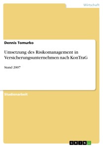 Studienarbeit aus dem Jahr 2007 im Fachbereich BWL - Bank, Börse, Versicherung, Note: 2,7, Gottfried Wilhelm Leibniz Universität Hannover (Institut für Versicherungsbetriebslehre), Veranstaltung: Ausgewählte Managementfragen, Sprache: Deutsch, Abstract: Die Besonderheit der letzten Jahre war die Globalisierung der Weltwirtschaft. Diese Entwicklung hat auch die Versicherungswirtschaft berührt. Um die Versicherungswirtschaft zu finanzieren, greifen die `Global Players` auf Kapitalmärkte zurück. Aus diesem Grund verschärft sich die Konkurrenz um Eigenkapital auf den internationalen Märkten. Das Management orientiert sich dadurch mehr an Investoren. Die Vorstandsentscheidungen sind immer mehr von Shareholder Value-Gedanken beeinflusst. In diesem Wettbewerb kommt es auf die Informationsbedürfnisse der internationalen, vorwiegend institutionellen Investoren an. Bis jetzt wurden diese Erfordernisse durch die Rechnungslegungsvorschriften in Deutschland wenig berücksichtigt. Auch mehrere Unternehmenszusammenbrüche der Vergangenheit, wie z.B. der Balsam AG und der COOP AG, lösten die Debatte über die Notwendigkeit der Verbesserung der Kontrollmechanismen zur Überwachung von Aktiengesellschaften aus. Der Gesetzgeber hat auf diese Situation mit dem `Gesetz zur Kontrolle und Transparenz im Unternehmensbereich` reagiert, das am 01.05.1998 in Kraft getreten ist. Bei der Einführung des KonTraG verfolgte der Gesetzgeber eine Reihe von Zielen. Dazu gehören u.a. die Transparenzerhöhung, die Steigerung der Qualität der Abschlussprüfung und der Kooperation zwischen den Abschlussprüfern und dem Aufsichtsrat, die Besserung der Aufsichtsratsarbeit, die Reduzierung von Stimmrechtsdifferenzierungen, die verstärkte Überwachung durch die Hauptversammlung und die Gestattung moderner Vergütungs- und Finanzierungsinstrumente. Der Gesetzgeber wollte das Risikomanagement von Aktiengesellschaften dadurch verbessern. Für das Verständnis des Begriffs `Risikomanagement` sowie des in § 91 II AktG vorgeschriebenen Überwachungssystems wird zunächst der Begriff des Risikos definiert. Dann werden das Risikomanagement und das Überwachungssystem i.S.d. § 91 II AktG miteinander verglichen, um feststellen zu können, ob bzw. inwieweit es sich hierbei um identische Systeme handelt. Den Schwerpunkt der vorliegenden Arbeit bildet die Beschreibung der theoretischen Umsetzung des Risikomanagements bei Versicherungsgesellschaften i.S.d. KonTraG. Anschließend wird am Beispiel der Münchener-Rück-Gruppe die praktische Umsetzung dargestellt. Den Abschluss dieser Arbeit bilden die Darstellung und die Diskussion der Probleme der praktischen Umsetzung.
