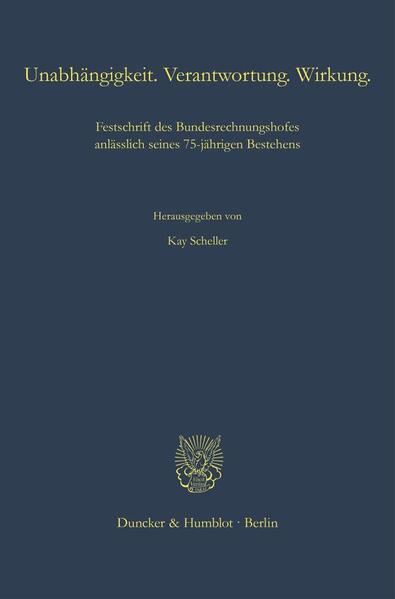 Scheller, Kay'Independence. Accountability. Impact. Celebrating the 75th anniversary of the Bundesrechnungshof': To celebrate the 75-year founding anniversary of the Bundesrechnungshof, Germany's Supreme Audit Institution, this anthology analyses public sector auditing from an interdisciplinary perspective. The articles examine how the Bundesrechnungshof developed from a traditional public audit institution to a valuable advisor of parliament and government. Based on this functional understanding, the authors discuss current challenges such as how to tackle record-high federal debt, disinformation and long-overdue reforms of the public sector.