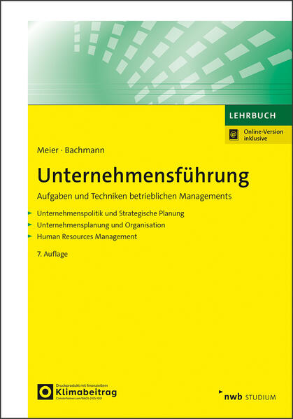 ¿Der schnelle, praxisnahe Einstieg in die Unternehmensführung. Systematisch und leicht verständlich zeigt das Buch die Grundlagen modernen Managements. Im Vordergrund steht das Handeln als verantwortliche Führungskraft im Unternehmen als Abteilungs- und Teamleitung oder im Projekt- und Prozessmanagement. Jedes Kapitel behandelt eine konkrete Managementaufgabe und deren Bewältigung durch typische Managementtechniken und Instrumente. Reale und anschauliche Praxisbeispiele lassen die Tätigkeit von Managerinnen und Managern lebendig werden. Für die vorliegende 7. Auflage wurden neben Aktualisierungen u. a. die Dimensionen der Industrie 4.0 und Arbeit 4.0 erweitert, insb. um Beispiele der Anwendung von KI. Auch finden sich neue Trends wie z. B. Social Entrepreneurship und Social Business sowie eine vertiefte Auseinandersetzung mit dem Thema Unternehmenskultur. Die Autoren Prof. Dr. Harald Meier (Alleinautor bis 6. Aufl.) ist langjähriger HR-Manager und Personalberater sowie emeritierter Hochschullehrer mit regelmäßigen Gastprofessuren weltweit und noch tätig im Training und Qualitätsmanagement, insb. in der internationalen Entwicklungszusammenarbeit. Prof. Dr. Jan-Thomas Bachmann ist Professor an der Hochschule Bonn-Rhein-Sieg und Unternehmensberater mit den Themenschwerpunkten Personal, Unternehmensführung und Entrepreneurship. Durch mehrjährige berufliche Stationen u. a. bei BCG und der REWE Group verfügt er über umfangreiche internationale Erfahrungen in der Führung von Unternehmen. Inhaltsverzeichnis: 1. Unternehmenspolitik und Unternehmensführung 2. Unternehmensveränderung und -entwicklung 3. Strategische Unternehmensführung 4. Controlling und HR-Management 5. Unternehmensorganisation und Führung 6. Konstitutive Unternehmensentscheidungen 7. Entwicklung und Unternehmensführung