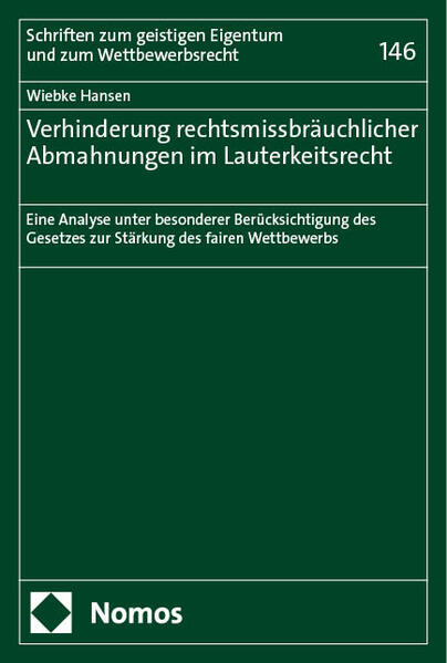 Wiebke Hansen<p>Eine umfassende Analyse zu den Möglichkeiten zur Verhinderung des Abmahnmissbrauchs im Lauterkeitsrecht. Das deutsche Lauterkeitsrecht zeichnet sich durch seine besondere Effektivität der Rechtsdurchsetzung aus. Es sieht sich jedoch auf der Kehrseite anhaltend dem Vorwurf ausgesetzt, rechtsmissbräuchliche Abmahnungen zu begünstigen. Die Arbeit greift das Problem des Abmahnmissbrauchs auf und analysiert die Möglichkeiten, diesem wirksam entgegenzutreten, ohne den lauterkeitsrechtlichen Rechtsschutz über das erforderliche Maß hinaus zu beeinträchtigen. Vor diesem Hintergrund analysiert die Arbeit insbesondere auch die Auswirkungen der Regelungen des Gesetzes zur Stärkung des fairen Wettbewerbs.</p>