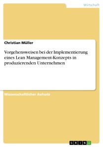 Christian MüllerWissenschaftlicher Aufsatz aus dem Jahr 2016 im Fachbereich BWL - Beschaffung, Produktion, Logistik, Note: 2,0, Technische Universität Berlin (Werkzeugmaschinen und Fabrikbetrieb), Veranstaltung: Lean Management, Sprache: Deutsch, Abstract: Die vorliegende Arbeit beinhaltet eine Literaturrecherche zur strukturellen Vorgehensweise bei der Implementierung eines Lean Management-Konzepts in produzierenden Unternehmen.Als Einführung wird zu einer möglichen Lean Management-Implementierung motiviert, indem neben den allgemeinen theoretischen Grundlagen des Lean Managements auch Erfolgszahlen und -fakten durch die erfolgreiche Implementierung dargelegt werden. Die Thematik wird dabei von der Historie des Lean Managements aus aufgegriffen und enthält wesentliche Eigenschaften hinsichtlich der Prinzipien des Lean Managements. Die Einführung ist in Richtung einer möglichen Implementierung als Vorbereitung des Themas in Kapitel 3 zugeschnitten. Das ganze Kapitel 2 ist eine Zusammenstellung allgemeiner Fachliteratur. Das Kapitel 3 widmet sich gänzlich der Lean-Implementierung. Dafür wurden als Primärliteratur die Werke „Lean Thinking“ von Womack & Jones und „Journey To Lean“ von Drew, McCallum & Roggenhofer zunächst kurz wiedergegeben. Die darauffolgenden Unterkapitel behandeln die strukturelle Vorgehensweise bei der Implementierung im operationellen und im strategischen Sinn. Die Implementierung der Primärliteratur wird hier erweitert. Hierbei wird zum einen auf die Umstrukturierung in der Produktion eingegangen, zum anderen aber stehen hier auch die typischen psychologischen und akzeptanzbedingten Barrieren in Change-Prozessen im Fokus. Dabei wurde eine Auswahl an Sekundärliteratur verwendet, die eben diese Punkte thematisieren. Punkte aus der Literatur werden durch eigene Erkenntnisse und Erfahrungen als eigener Beitrag ergänzt. Ein Fazit gibt einen kurzen Überblick über die gesamte Arbeit zur strukturellen Vorgehensweise zur Lean-Implementierung, spiegelt die wesentlichen Herausforderungen wider und gibt einen kurzen Ausblick in die Zukunft.