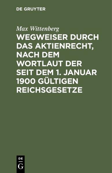 Wegweiser durch das Aktienrecht, nach dem Wortlaut der seit dem 1. Januar 1900 gültigen Reichsgesetze