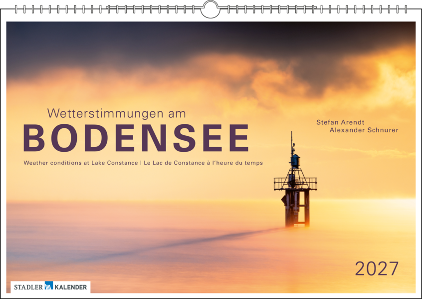 Die Fotografen Stefan Arendt und Alexander Schnurer zeigen in diesem Kalender einzigartige Wetter- und Lichtstimmungen am Bodensee, die dem Betrachter Einblicke in eine völlig neue Perspektive eröffnen und ihn am Naturschauspiel teilhaben lassen.
