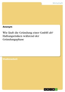 Studienarbeit aus dem Jahr 2023 im Fachbereich BWL - Unternehmensgründung, Start-ups, Businesspläne, Note: 2,0, FOM Essen, Hochschule für Oekonomie & Management gemeinnützige GmbH, Hochschulleitung Essen früher Fachhochschule, Sprache: Deutsch, Abstract: Die Arbeit beschäftigt sich mit der Gesellschaft mit beschränkter Haftung, ihren Gründungsabschnitten und den möglichen Haftungsrisiken für die Gesellschafter bzw. den Geschäftsführer. Diese Gesellschaftsform hat die größte praktische Bedeutung im deutschen Wirtschaftsleben. In Deutschland sind mehr als 1 Mio. Gesellschaften mit beschränkter Haftung vertreten. Für sie gilt das GmbH-Gesetz, welches aus dem Jahr 1982 stammt.Im Jahr 2014 waren rund 39,9% der Betriebsgründungen Gesellschaften mit beschränkter Haftung. Auch die dritt beliebteste Rechtsform, die GbR findet im Gründungsprozess einer Kapitalgesellschaft Anwendung. Die Beliebtheit dieser Rechtsform lässt sich im Besonderen auf ihre Abschirmwirkung zurückführen, welche eine direkte Haftung der GmbH-Gesellschafter bzw. GmbH-Gesellschafterinnen ausschließt und diese i.d.R. auf das Gesellschaftsvermögen beschränkt.Ein weiterer Vorteil, im Vergleich zu einer Personengesellschaft, ist die Möglichkeit eine Gesellschaft als einzelne Person zu gründen. Außerdem ist die Gründung dieser Gesellschaft zu jedem gesetzlich zulässigem Zweck erlaubt und ist demnach nicht auf den Betrieb eines Handelsgewerbes beschränkt. Als Kapitalgesellschaft ist die GmbH, im Gegensatz zu einer Personengesellschaft, auf die reine Kapitalbeteiligung und nicht auf die Mitarbeit der Gesellschafter ausgelegt. Weitere Merkmale einer Kapitalgesellschaft, hier speziell der GmbH, sind u.a., dass die Anteile an der Gesellschaft grundsätzlich veräußert und vererbt werden können und die persönliche Mitarbeit der Gesellschafter aufgrund der Möglichkeit zur Drittorganschaft bei der Geschäftsführung nicht notwendig ist.