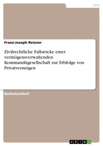 Bachelorarbeit aus dem Jahr 2016 im Fachbereich Jura - Zivilrecht / Familienrecht / Erbrecht, Note: 1.3, Hochschule München, Sprache: Deutsch, Abstract: Diese Arbeit beschäftigt sich mit zivilrechtlichen Fallstricken bei der Konstruktion einer vermögensverwaltenden Kommanditgesellschaft zur vorweggenommenen Erbfolge von Privatvermögen. Die Arbeit untersucht sowohl Herausforderungen als auch Intentionen, die sich bei der Gründung einer vermögensverwaltenden Gesellschaft zur Vorwegnahme der Erbfolge ergeben können. Ausgangsposition ist ein aus dem Jahr 2014 stammende Gesellschafts- und Einbringungsvertrag. Die Gründe für eine Vermögensübertragung zu Lebzeiten sind zahlreich. Hauptintention des vorliegenden Vertrags war es jedoch, das zu Lebzeiten durch die Erblasser geschaffene Vermögen zu bündeln und für die Nachfolgegenerationen dauerhaft zu bewahren. Um die Liquidität, die wirtschaftliche Prosperität und das langfristige Bestehen der Gesellschaft für die kommenden Generationen zu behüten, werden diejenigen Klauseln untersucht, die aufgrund des enormen Gestaltungsspielraums zahlreiche potenzielle Fallstricke aufweisen. Ein „Stolpern“ könnte den Verlust großer Teile des Vermögens bedeuten, schlimmstenfalls wohl das Auseinanderbrechen der Gesellschaft mit sich bringen und so das über Generationen erwirtschaftete Vermögen in die Hände (fremder) Dritter fallen lassen. Die Nachfolgegeneration der Wirtschaftswunderkinder in Deutschland wird oft als Erbengeneration bezeichnet. Nie zuvor konnte eine Generation für einen derart langen Zeitraum, verschont von Krieg, Inflation und anderen Katastrophen am Vermögensaufbau arbeiten und dieses Vermögen an die Nachkömmlinge weitergeben. In der zweiten Hälfte des 20. Jahrhunderts und in den ersten eineinhalb Dekaden des neuen Jahrtausends wurden erstaunliche Vermögenswerte geschaffen. So hat sich das Geldvermögen der Deutschen in letzten 30 Jahren um den Faktor Fünf vermehrt. Das Deutsche Institut für Altersvorsorge hat kürzlich ermittelt, dass in den kommenden zehn Jahren in Deutschland ein Nachlass in Höhe von rund 3.100 Mrd. Euro vererbt werden wird.Viele Erblasser hegen den Wunsch, Teile ihres Vermögens mit „warmen Händen“, also zu Lebzeiten, an die nachfolgende Generation zu übergeben. Diesem Ansinnen trägt das Rechtsinstitut der vorweggenommenen Erbfolge Rechnung. Sie ermöglicht die lebzeitige Ordnung der Verhältnisse und gibt den Erben beizeiten eine reizvolle Perspektive. Zugleich können die Übergeber zusehen, wie die Erben in ihre Verantwortung hineinwachsen und mit Rat und Tat zur Seite stehen.