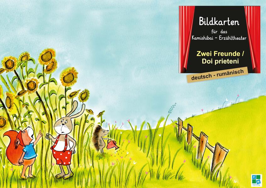 Bildkarten der Bilderbuchgeschichte "Zwei Freunde" für das Kamishibai-Theater in deutsch/rumänisch - 13 Bildkarten im DINA3 - Format (29,7 x 42,0 cm), auf festem 300g-Bilderdruck - farbig illustriert - passend für das Kamishibai-Theater - in praktischer DINA3-Tasche zur Aufbewahrung - ideal zur Sprachförderung - kompletter Text auf separater Seite zum Vorlesen - ideale Ergänzung zum Kniebuch Die Bildkarten eignen sich mit ihrem spielerischen Ansatz und der Verbindung vom Zuhören und Sehen perfekt für die Sprachförderung in der Kita oder zum Zweitspracherwerb.. Die Bildkarten werden in das Kamishibai gesteckt und beim Vorlesen des Textes ausgewechselt. Danach können sie auch im Gruppenzimmer aufgehängt werden, um weitere Aktionen zu gestalten. Thema Streit: Das Eichhörnchen Elmar und der Hase Hektor sind traurig. Dort, wo sie leben, ist alles einsam und vertrocknet. Es gibt auch nichts mehr zu essen. Also beschließen die beiden Freunde sich ein neues Zuhause und neue Freunde zu suchen. Aber wohin können sie gehen? NEU - Jetzt auch als KNIEBUCH erhältlich! Alle Kamishibais und Kniebücher sind in 27 verschiedenen Sprachen erhältlich: