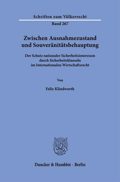 'Between Exceptionalism and Expressing Sovereignty': The thesis examines the security exception clause in international economic law. It analyses the dogmatic foundations, historical origins and susceptibility to abuse of the clause. In addition, the phenomenon of securitisation is examined as a political mechanism and in the form of legal design. Influenced by this, states adapt their design and behaviour (in dispute resolution).
