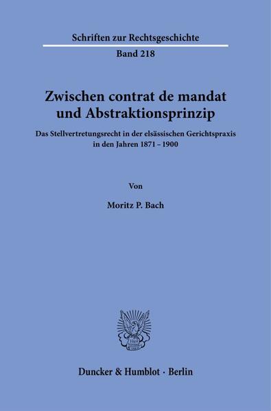 Bach, Moritz P.»Between Contrat de Mandat and the Principle of Abstraction. The Principles of Representation in Judicial Practice of Alsace-Lorraine from 1871 to 1900«: In his study, Moritz P. Bach examines the judicial practice in Reichsland Alsace-Lorraine at a place where and time when the German ADHGB from 1862 clashed with the French Code Napoléon from 1804, both conveying very different principles of representation in civil law. After a comparison of aforementioned legal texts, the author uses case law analysis to verify that Alsacian courts interpreted and developed French law according to the German ADHGB and its categories.